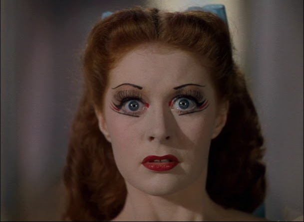 There’s one major difference. The small flashes of red painted near each corner of Shearer’s eyes to increase the drama of a look designed for the stage become flames or wings on Lane. I like to think of them as wings. While Shearer’s dancer, torn between love or her career, loses everything, Lane’s musician dumps her lothario to ultimately triumph on her own talent.