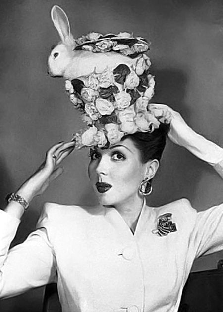 Easter greetings from Spellbound HQ! I hope yours was lovely. For a last moment of celebratory fun, here’s Easter Parade star Ann Miller wearing a truly unique variation of the Easter bonnet. Inside her floral, hinged top hat sits a real, living rabbit. Miller and rabbit look nonplussed, and the actress does her best to make the look chic.